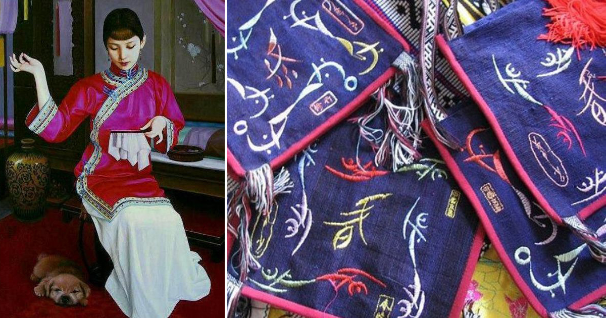 Своё особенное женское письмо нюй-шу было в китайской народности Яо. Оно представляет собой иероглифы, переделанные под слоговую письменность: китаянок не обучали писать и читать, они понимали только некоторый общий принцип и приспособили под свои нужды иероглифы, как смогли. Поскольку женщина древнего Китая, схватившаяся за тушь и бумагу, также вызвала бы подозрения, послания нюй-шу вышивались на предметах одежды, покрывалах, кошельках. Потом этими предметами обменивались в храмах - замужние женщины из средних сословий больше никуда не могли выходить из дома.