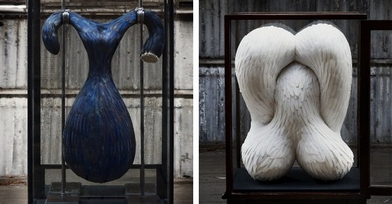 Создавая скульптуры непривычной для человеческого восприятия формы с обычным птичьим оперением, художница пробуждает присущую людям возможность воспринимать вещи на интеллектуальном и интуитивном уровнях одновременно.