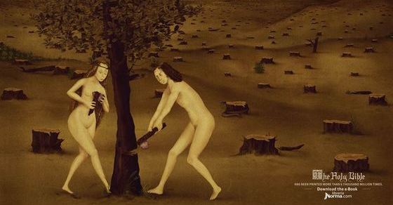На забавных постерах, созданных колумбийским рекламным агентством «DDB», герои перечисленных произведений «рубят» деревья во имя новых и новых экземпляров. Куда практичнее, по мысли Libreria Norma, использовать электронные книги, позволяющие сохранить природное богатство окружающего мира.