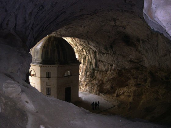 Крошечный храм Валадье - идеальное место для тех, кто ищет уединения и покоя. Он построен в пещере Святого пристанища (итальянский регион Марке), которая была известна как место религиозного культа уже в 10 веке. Расположенный в самом сердце древнего грота посреди известняковых скал, храм выглядит как настоящая жемчужина.