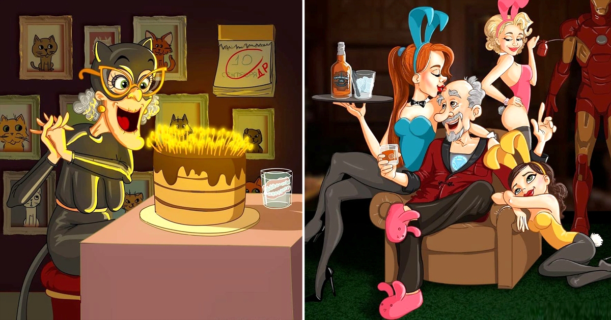 К сожалению, время не стоит на месте, и годы берут своё. И как бы прискорбно это не звучало, но старость приходит к каждому. Да вот только говорить на данную тему совсем неактуально, особенно если речь заходит о комиксах и мультфильмах, где любимые многими персонажи извечно молодые, резвые и бодрые. Но российская художница Леся Гусева решила обыграть сложившуюся ситуацию иначе. В своей ироничной серии работ под названием «Пенсионеры» она показала то, как выглядят пожилые супергерои, которые, уйдя в отставку, наслаждаются закулисной жизнью в роли простых людей.
