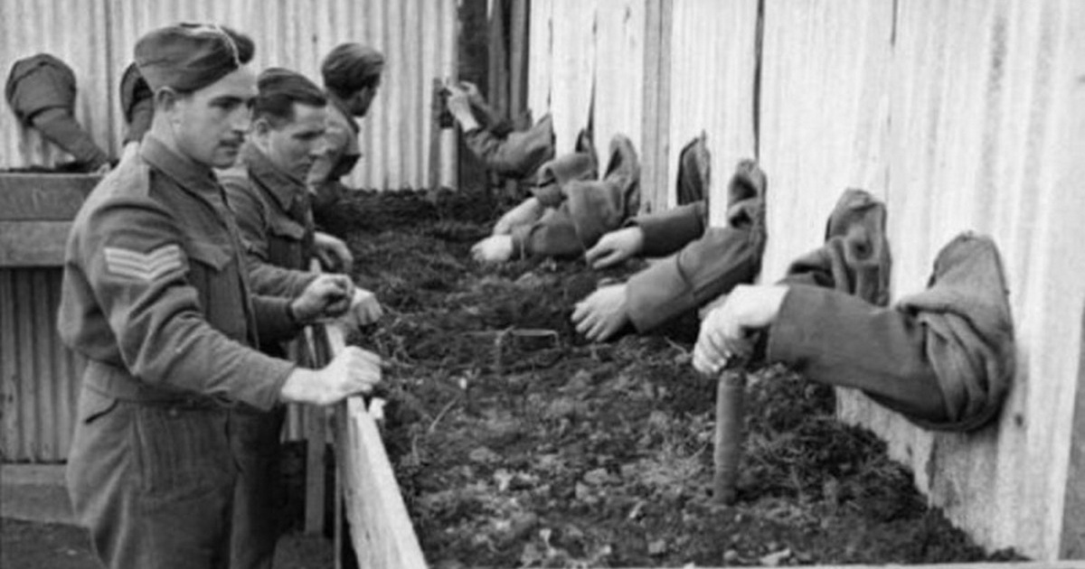 Тренировка по обезвреживанию учебных мин вслепую, чтобы бойцы могли работать ночью, 1943 год.