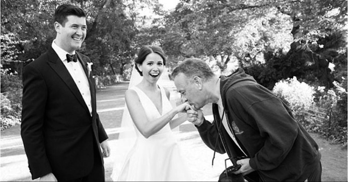 Чаще всего свадьбы проходят достаточно спланированно и каждый отрезок этого знаменательного события более-менее предсказуем. Однако того, что произошло с Элизабет и Райаном в день их бракосочетания, не ожидал никто. Прямо посреди фотосессии к влюбленной паре подошел сам Том Хенкс и лично поздравил их со свадьбой.