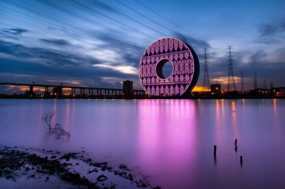 Вместе со своим отражением в воде кольцеобразное здание образует восьмерку, и это не случайность. Архитектор специально спроектировал его таким образом, чтобы оно выглядело как знак бесконечности, ведь китайцы так любят подобные символы, а восьмерка, к тому же, для жителей Страны восходящего солнца счастливое число.