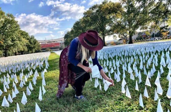– Посмотрите на этот флажок, – говорит автор проекта, художница Сюзанна Бреннан Фирстенберг, – А теперь подумайте о школьной учительнице, жизнь которой только что оборвалась. Ее смертью были шокированы все: ее семья, ученики, соседи, коллеги и медработники, которые пытались ее спасти. Постарайтесь удержать в себе и осознать всю эту скорбь, а потом посмотрите на десятки тысяч остальных флажков и умножьте её.
