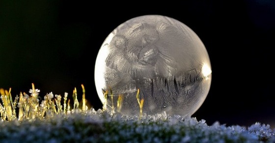 Утренней температуры в 9-12 градусов мороза хватало для того, чтобы пузыри хорошенько замерзали. На глазах у фотографа и ее изумленного сына тончайшие стенки мыльных пузырей кристаллизировались, и они вдруг становились похожи на хрустальные шары. Одни пузырьки моментально застывали в воздухе, падали на землю и разбивались, другие же – «схватывались» уже приземлившись и сохраняли форму.