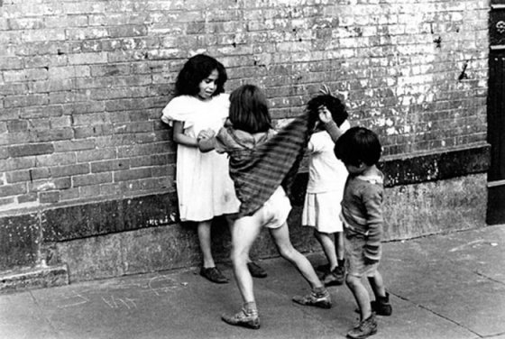 Мальчик, заглядывающий под юбку девочке. Автор фото: Helen Levitt.