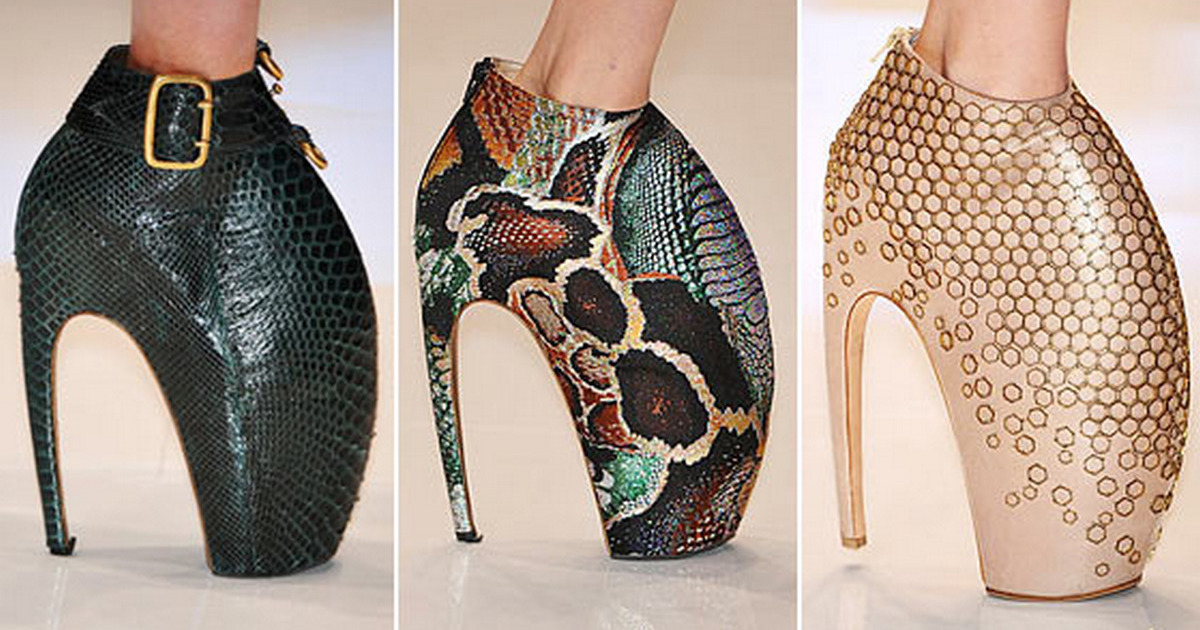 Эта обувь впервые была показана во время демонстрации коллекции «весна/лето» Plato Atlantis в 2010 году и также называется «ботинки броненосца». Утверждается, что ботинки создают иллюзию балерины на носочках. Обувь имеет высоту 30 сантиметров и изначально не предназначалась для коммерческого производства. Тем не менее, поклонники выстроились в очередь, чтобы купить подобное. Бесспорно, стиль дизайна Александра МакКуина причудлив, и именно это делает его высокой модой и настоящим искусством. Эти ботинки действительно выглядят как произведение искусства, и все было бы неплохо, если бы они демонстрировалась где-то в стеклянной витрине, а не использовались для ношения.