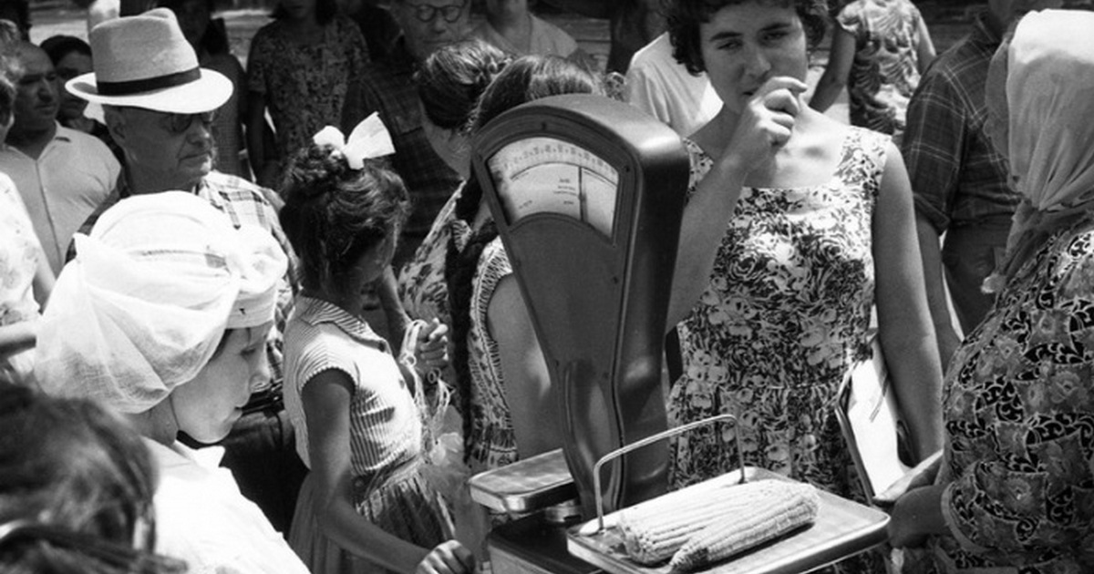 Городской рынок, женщина покупает кукурузу, 1963 год.