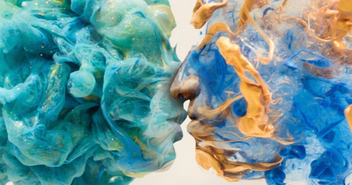 Фотографии Криса Слаббера хочется долго рассматривать, изучая мельчайшие детали. Запечатленные капли краски, растворяющиеся в воде, приобретают причудливые очертания, напоминают фантастических существ. Чтобы усилить визуальный эффект, автор компилирует эти силуэты с женскими и мужскими портретами. Создается впечатление, будто загадочная фигура рождается из хаотичного движения молекул краски.