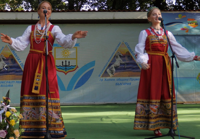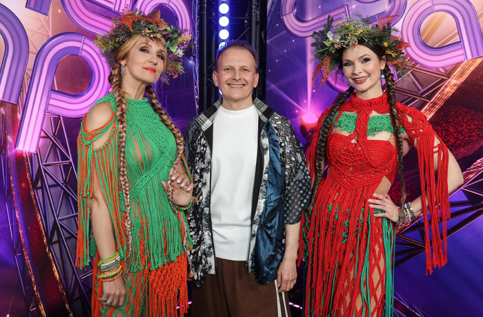 И только «Балаган Лимитед» - три девушки и двое парней в народных костюмах – на протяжении всего этого круговорота продолжают неподвижно стоять на сцене и исполнять песню. С подчеркнуто серьезными и даже строгими лицами.