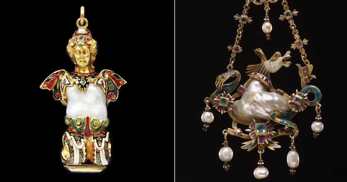 Жемчуг всегда считался уникальным. Когда его начали привозить в Европу из Нового Света в XV веке, жемчуг сразу стал пользоваться огромной популярностью. Ведь это вещество отличалось от «обычных» бриллиантов, изумрудов и рубинов тем, что оно было «живым». Вспыхнула настоящая «Жемчужная лихорадка», которая почти довела до безумия богатых людей. Жемчуг стал чем-то вроде мерила статуса человек. Учитывая, что на жемчуг был бешеный спрос среди богатых и влиятельных людей, ювелиры начали делать не просто обычные ожерелья из жемчужин, а создавать настоящие произведения искусства.