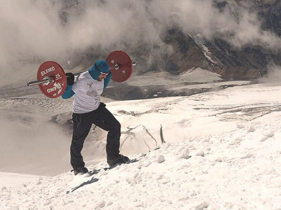 Андрей Родичев - силач, которому удалось подняться на Эльбрус со штангой весом 75 кг!