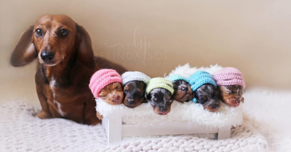 Если в семье фотографа, специализирующегося на фотосессиях детей и беременных женщин, появляется будущая мама, то ей, конечно, не избежать красивых снимков. Даже если эта мама - такса. Фотографии беременной собаки по имени Миа, а позже - новорожденных детенышей и милых связанных миниатюрных шапочек для них, буквально взорвали интернет, вызвав волну умиления.