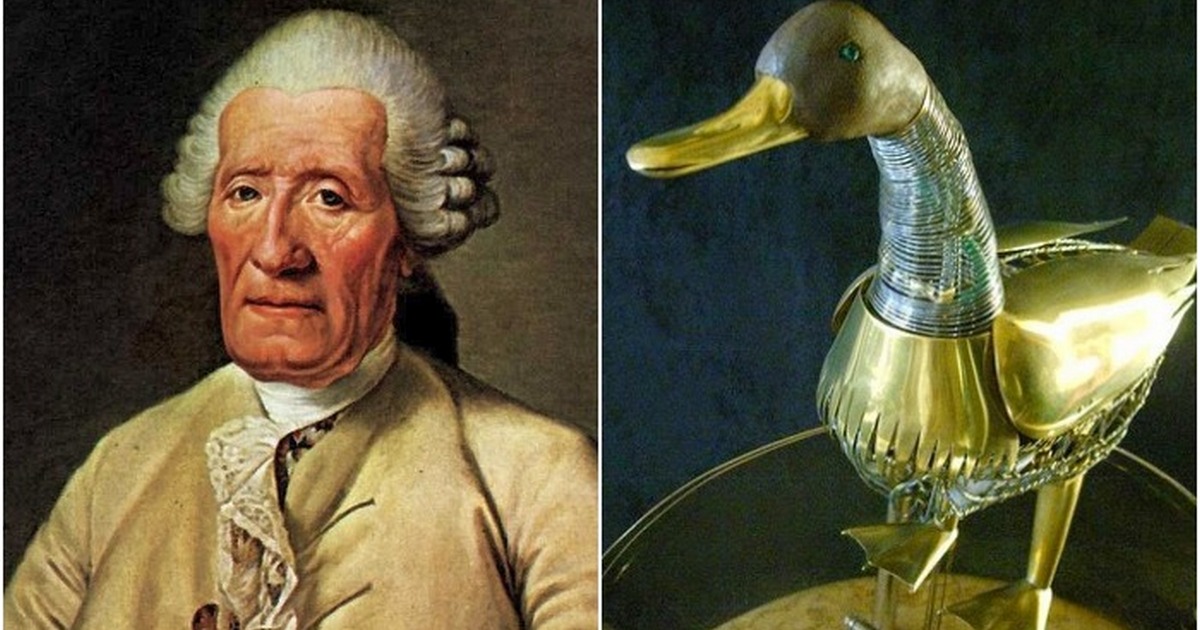 Следует добавить, что к внешнему виду своих автоматонов Вокансон подходил тоже довольно требовательно – металлические пальцы плохо влияли на звучание музыкального инструмента, поэтому андроид был «одет» в кожу. Но еще большей сенсацией стала представленная в 1739 году «Утка» – механическая птица, способная вести себя как настоящая, в том числе махать крыльями, крякать, пить воду, клевать зерна, а главное – оставлять после себя продукты «жизнедеятельности», чрезвычайно похожие на настоящие.
