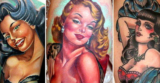 Примерно в это же время моряки, дальнобойщики и солдаты стали украшать свои тела портретами полюбившихся красоток, чаще всего это были известные модели и актрисы.