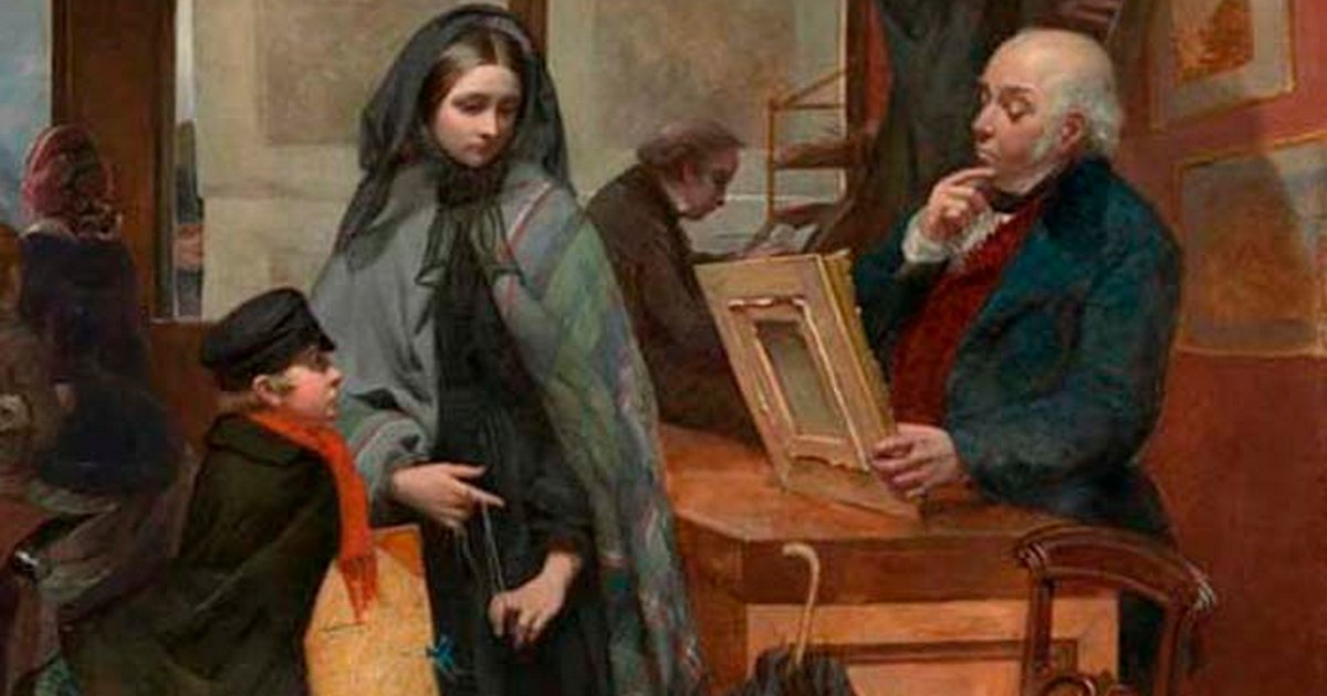 Ужас ситуации для большинства женщин той эпохи заключался в том, что, оставшись «без имени и без друзей» - как героиня на картине Эмили Мэри Осборн, девушкам было очень сложно найти достойное место в жизни. Судя по одежде, юная художница недавно потеряла родителей. Она пришла в лавку, чтобы попытаться продать свою картину, но шансов на это у нее явно мало. Младший брат, единственный помощник, сопровождает ее.