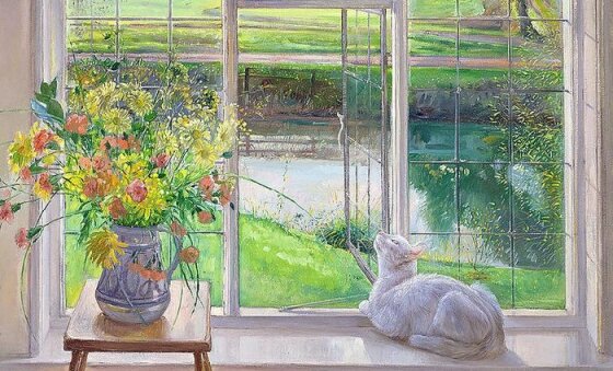 Через виды из окон Тимоти часто показывает потрясающую сельскую местность, окружающую его дом на юге Англии. Нередко в оконных проемах можно увидеть домашних любимцев художника, которые прорисованы с особой любовью.