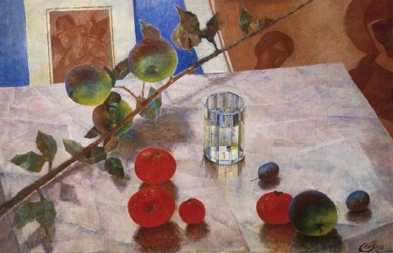 Анализируя творчество Петрова-Водкина искусствоведы пришли к выводу, что художник в буреломные революционные годы обратился к жанру натюрморта от безысходности. "Выходить лишний раз из дома на пленэр опасно — за окном диктатура пролетариата. Заплатить натурщице нечем — вокруг голод и нищета. Что ждет от искусства новая власть рабочих и крестьян — тоже не понятно. Вот и остается рисовать стол с граненым стаканом, скудным пайком и яблоками, которые присылает мама из далекого Хвалынска".
