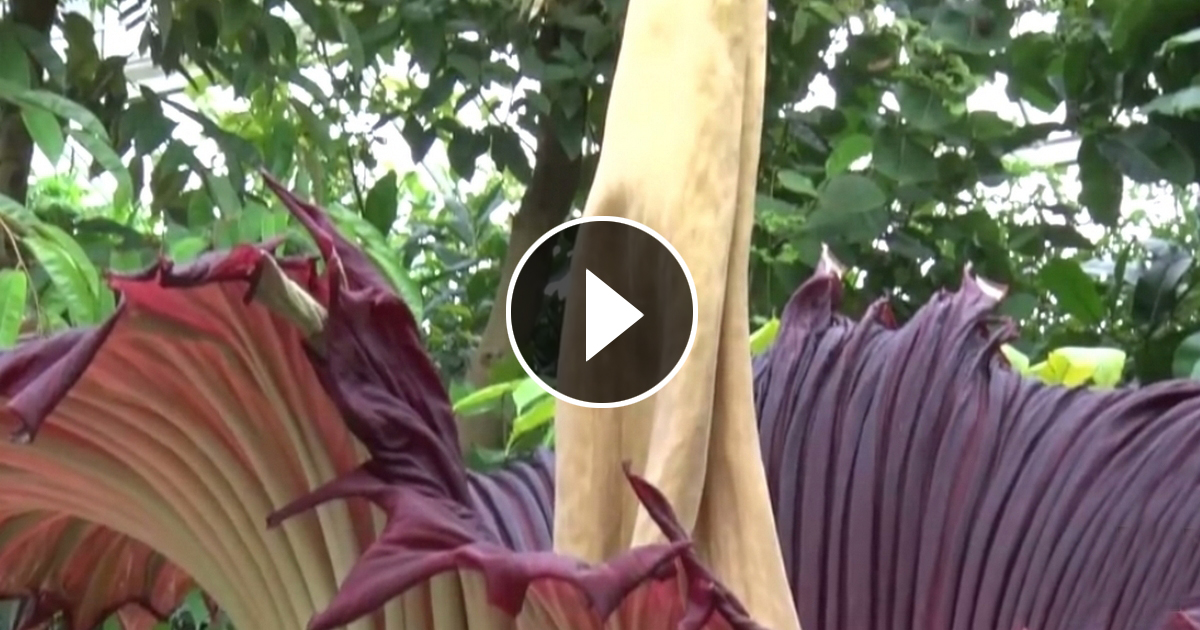 В ботаническом саду Бельгии зацвел «трупный цветок» (Titan Arum), который считается самым большим цветком на планете. Высота распустившегося цветка достигает 1,9 метра, а весит он около 18 кг. Цветение этого уникального растения длится всего 72 часа, но зрелище стоит того, чтобы его увидеть.