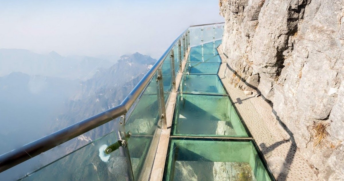 «Стеклянная небесная тропа», словно длинный балкон, прикрепленная к горе Тяньмэнь в китайской провинции Хунань, всего лишь одна из нескольких подобных смотровых площадок в Поднебесной, но обычно именно она вызывает у путешественников наибольший ужас. И хотя ее длина – только 60 метров, 1,5-километровая пропасть под стеклянным полом невольно заставляет особенно впечатлительных туристов в прямом смысле слова «идти по стеночке». А от того, что ты идешь вдоль отвесной стены, кажется, что ты самый настоящий скалолаз, и это делает путь еще более захватывающим.