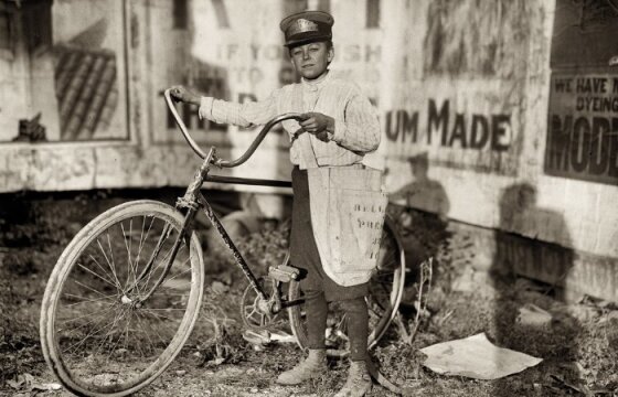 Развитие курьерской доставки на велосипедах припало на 90-е годы XIX века и начало XX века. Для этой работы использовали несовершеннолетних мальчиков от 10 до 15 лет, хотя были и меньшие по возрасту. Это заставило со временем Национальный комитет по детскому труду задуматься и собрать данные об их занятости, подтверждающие рабский труд. В 1908 году был нанят социолог и фотограф Льюис Хайн, который, оставив педагогическую работу, посвятил время, чтобы собрать факты использования детского труда. За 10 лет объехал многие города, побывал в разных районах, общался с детьми, которые работали, и потом на основе данных был составлен отчет. Он и показал, в каком положении они находились, и что вместо игрушек работают допоздна.