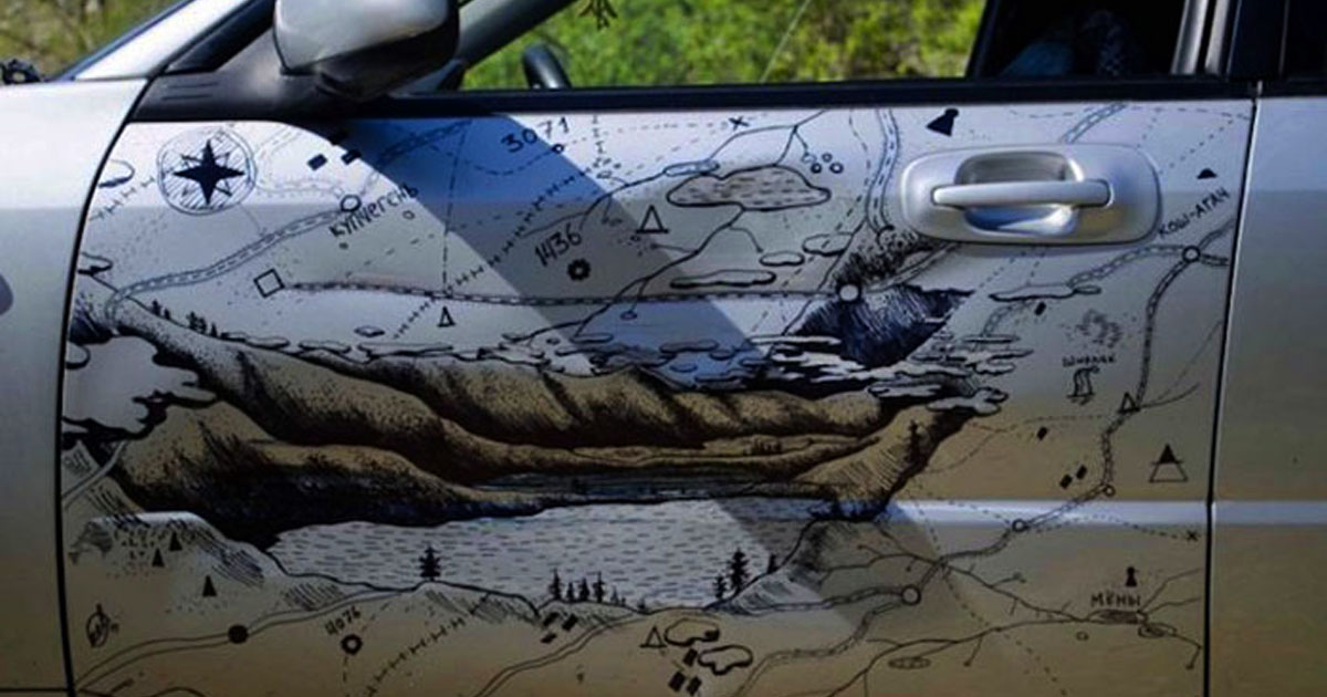 В ближайшем магазине водитель купил водостойкий черный маркер и принялся разрисовывать вмятину. Так, вместо углубления в двери появились горы и озеро, а многочисленные трещины исчезли под рисунком дорог, по которым, возможно, водитель уже проехал, обозначением городов Алтая и его озер. Водитель уверяет, что его рисунок - всего лишь временное решение до тех пор, пока он не доберется до проверенной СТО. Но в то же время, эта история наглядно показывает, как любую неприятность можно обратить во что-то, что вдохновляет и вместо изъяна становится привлекательной особенностью.