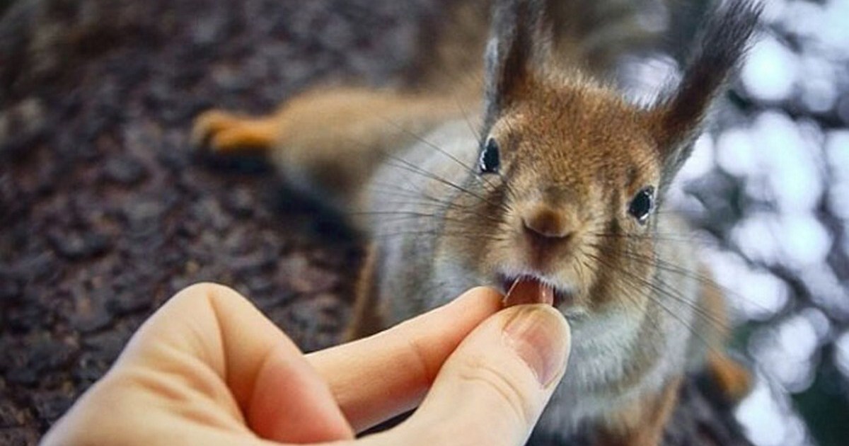 Заклинатель белок: лесные животные позируют взамен на вкусняшку