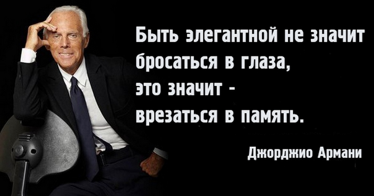 Джорджио Армани – человек, который создал целую империю моды. Он точно знает все правила стиля и уверен, что не стоит недооценивать собственные внутренние силы. Мы собрали для наших читателей самые яркие цитаты кутюрье, которые будут полезны всем, кто заботится о собственном имидже.