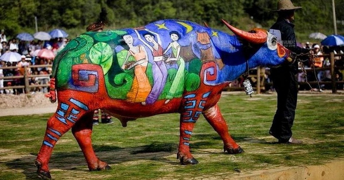 Если боди-арт стал привычным явлением в современном искусстве и рисунками на теле человека уже мало кого удивишь, то «звериный» бодипейнтинг неизменно вызывает интерес у зрителей. В китайском уезде Jiangcheng (городской округ Пуэр) вот уже третий год подряд проходит необычное состязание: художники из разных стран мира съезжаются сюда, чтобы продемонстрировать свое мастерство в разукрашивании… крупного рогатого скота.