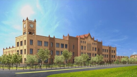 Здание спроектировали в форме каре. У него будут два симметричных крыла и башня, на которой, конечно же, установят часы. Перед школой появится площадь, а рядом с постройкой – спортивная зона. Площадь здания составит около 3,8 тыс. квадратных метров.