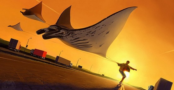 С рисунками Алексея Андреева мы уже знакомили читателей сайта Культурология.Ру. Его воздушные фантасмагории, несомненно, запомнились, в первую очередь, стремлением преодолеть законы физики и дать возможность человечеству летать по небу, а не ходить по земле. Новые работы, объединенные в цикл «Отдельная реальность» - это еще одна попытка нарушить законы гравитации. Эти сюрреалистические иллюстрации – зарисовки из некой альтернативной вселенной, где живут такие же люди, как мы, но у них все по-другому. Летающие дома и целые острова, скаты, «запряженные» в скейтборды… Чего только не увидишь!