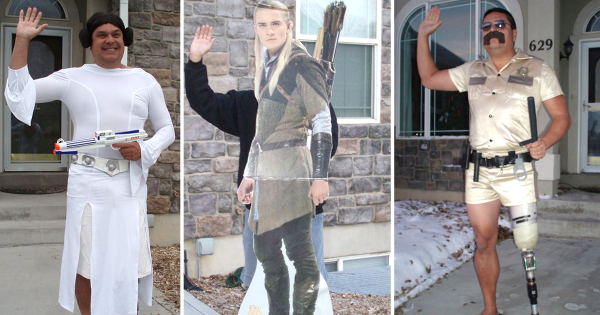 Интересно, что за все это время Дейл потратил на свои костюмы всего лишь около 50 долларов. Очень скоро новость о забавной выходке папы Райна распространилась по округе, и соседи и знакомые сами стали предлагать Дейлу идеи и костюмы для новых преображений.
