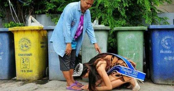 Королева красоты Таиланда встала на колени перед своей матерью, собирающей мусор