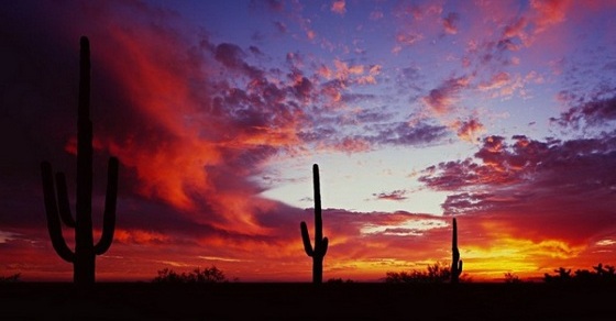 Штат богат на самые разные удивительные природные явления. Огромные кактусы в пустыне - это символ Южной части США. Заходящее солнце окрашивает природные красоты в потрясающе яркие цвета. Фотограф Джейсон Сэмпсон.