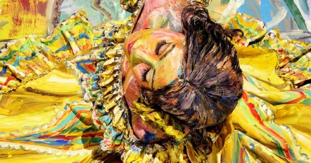 С первого взгляда всё выглядит так, словно картина наполнена от и до буйством красок и цветов, но стоит остановиться и посмотреть поближе, то понимаешь, что это живое и динамичное изображение, созданное по принципу боди-арта с самыми настоящими элементами живописи, полностью передающими движения и детали.