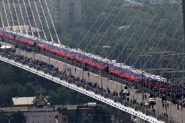 7 июля 26904 жителей Владивостока составили живое изображение российского флага. Этот флешмоб по числу участников побил достижение Пакистана (24200 человек) и будет занесён в Книгу рекордов Гиннесса. Об этом сообщил Крейг Глиндей, который приехал во Владивосток из Лондона.