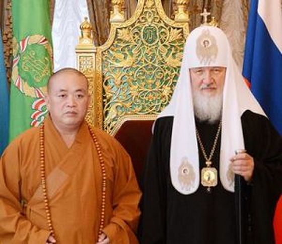Предстоятель РПЦ, патриарх Кирилл провёл встречу с Ши Юнсинем, настоятелем китайского монастыря Шаолинь, который прибыл в Москву в составе делегация монахов, которые стали участниками Международного военно-музыкального фестивале «Спасская башня».