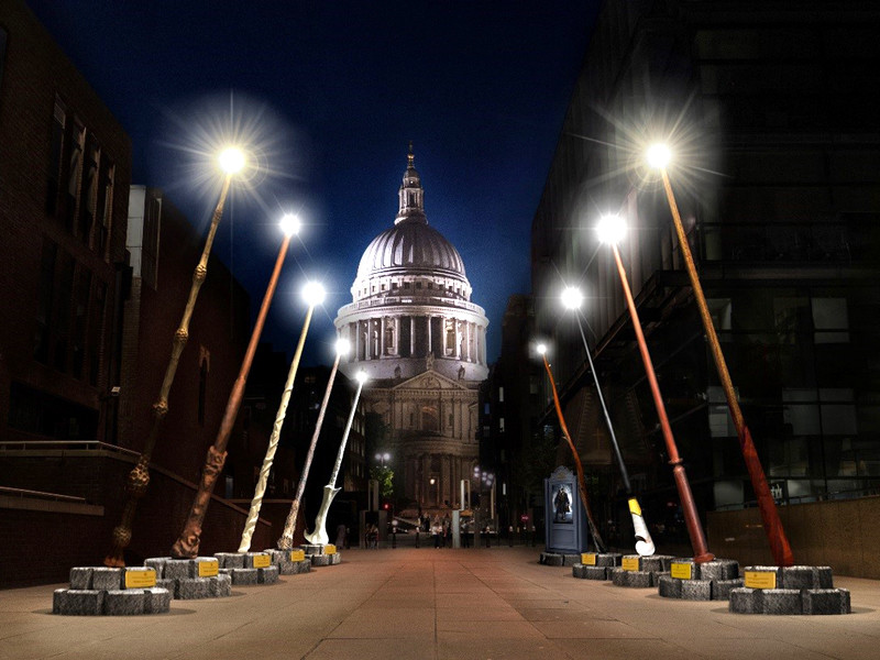 В Лондоне между собором Святого Павла и мостом Тысячелетия установили необычные светильники. По своей форме они напоминают гигантские волшебные палочки, которыми пользуются маги в фильмах про юного волшебника Гарри Поттера. Всего было установлено девять таких огромных палочек-светильников. Подробнее