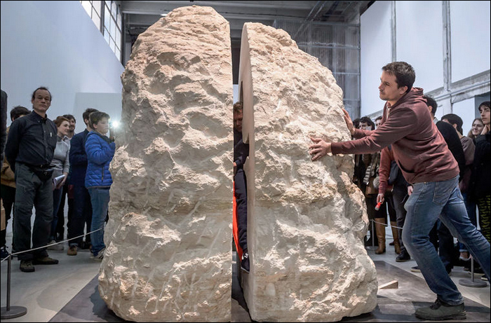 Французский художник просидел внутри камня целую неделю, питаясь пюре и дыша через небольшую щель. Что именно мастер современного искусства хотел сказать своим перформансом пока остается неясным. Подробнее
