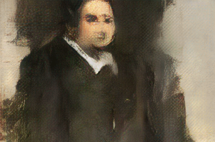 На последние торги аукционного дома Christieʼs в перечень лотов решили включить и картину с названием «Портрет Эдмонда де Белами». Особенность ее заключается в том, что она не создавалась великим художником, а является творением искусственного интеллекта.