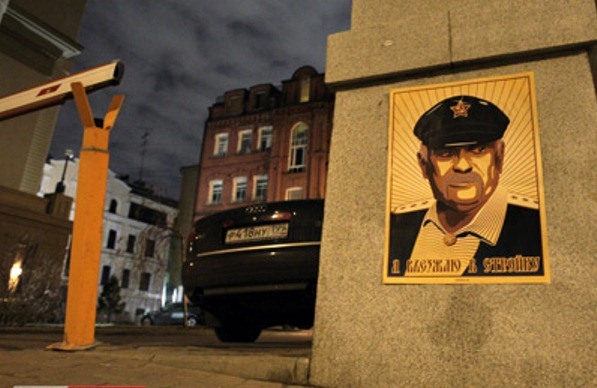 Плакаты, выполненные в стиле 20-х годов, с изображением Никиты Михалкова, появились в Малом Козихинском переулке, в котором возводится скандально известная гостиница мэтра российского кинематографа.