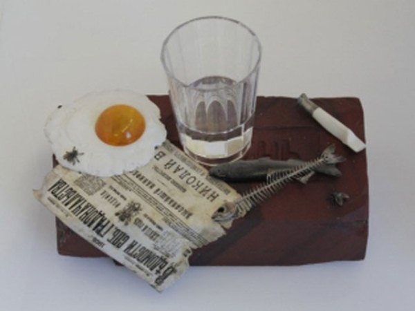 В Музее Фаберже в коллекции произведений российского ювелирного дома появился новый, весьма необычный экспонат – камень, на которым художественно разложен «джентльменский набор»: обрывок газеты, яичница, недокуренный бычок, граненый стакан с недопитой водкой и скромная закуска. Этот экспонат музей приобрёл за $ 1 миллион.