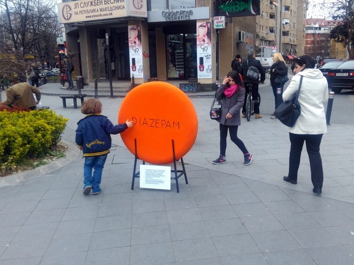 В Македонии группа скульпторов решила пошутить над столичными властями, установив на улице памятник в виде гигантской таблетки антидепрессантов. Так художники ненавязчиво намекнули на манию властей к установке монументов за бюджетные деньги. Подробнее