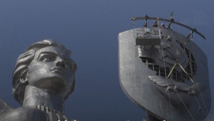 Во вторник в Киеве рабочие сняли серп и молот с гигантской скульптурной фигуры Родина Мать, возвышающейся над украинской столицей. Такое решение было принято в рамках кампании по ликвидации советских символов, которая активизировалась после вторжения Москвы. Подробнее