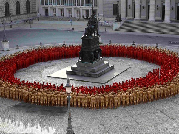 Скандальный американский фотограф Спенсор Туник в очередной раз удивил мир массовой фотосессией обнаженных людей. На этот раз инсталляцию Туник организовал в Мюнхене перед Баварским национальным оперным театром. Для своей инсталляции он собрал 1700 обнаженных добровольцев.