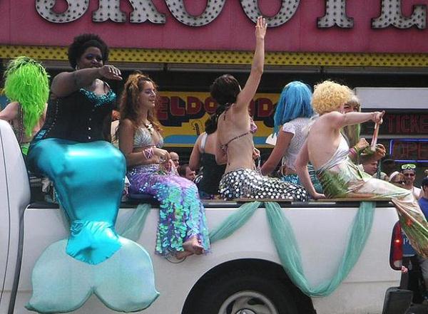 22 июня, в субботу, в Нью- Йорке прошёл ежегодный парад русалок. Тысячи людей в ярких костюмах мифически морских существ и обитателей подводного мира, моряков, пиратов прошли на Кони-Айленду, который сильно пострадал от прошлогоднего урагана «Сэнди».