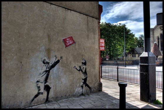 В одном из северных кварталов Лондона из стены здания вырезали работу всемирно известного художника-граффитиста Бэнкси «Игры с мячом запрещены». Как стало известно из сообщения телерадиокорпорации Би-Би-Си, картина будет выставлена на одном из благотворительных аукционов.