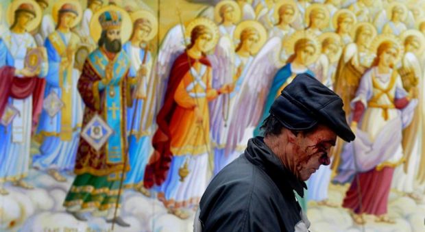 На международной выставке в Праге победила фотография, сделанная чешским журналистам на Майдане в Киеве в ночь на 1 декабря 2013 года. Фотография называется «Начало» - мужчина с окровавленным лицом на фоне стены с ангелами Михайловского собора. Подробнее