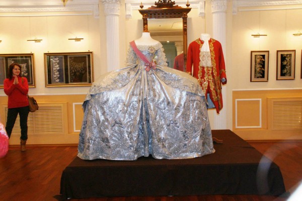 В Ульяновске, в музее «Симбирское купечество» состоялось открытие уникальной выставки «Золотой век Екатерины II в искусстве сценического костюма». Посетители выставки смогут увидеть точную копию венчального платья императрицы, сшитую из кухонных мочалок